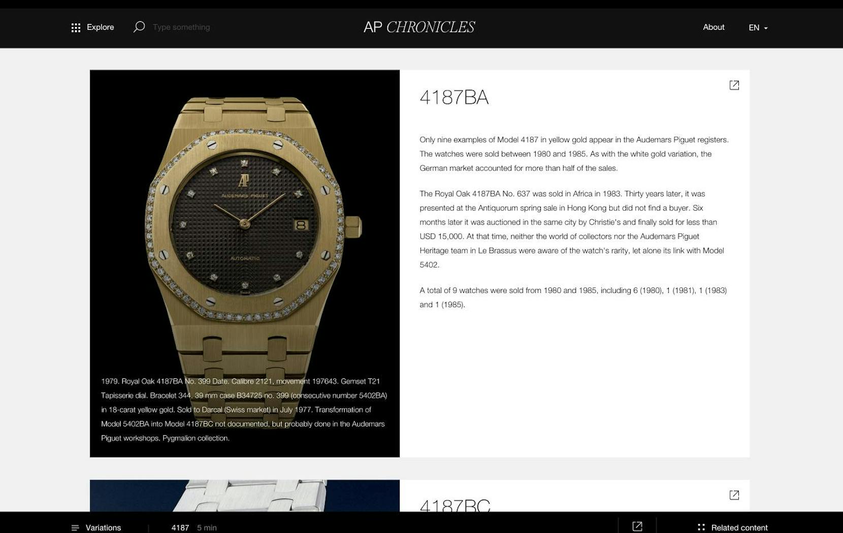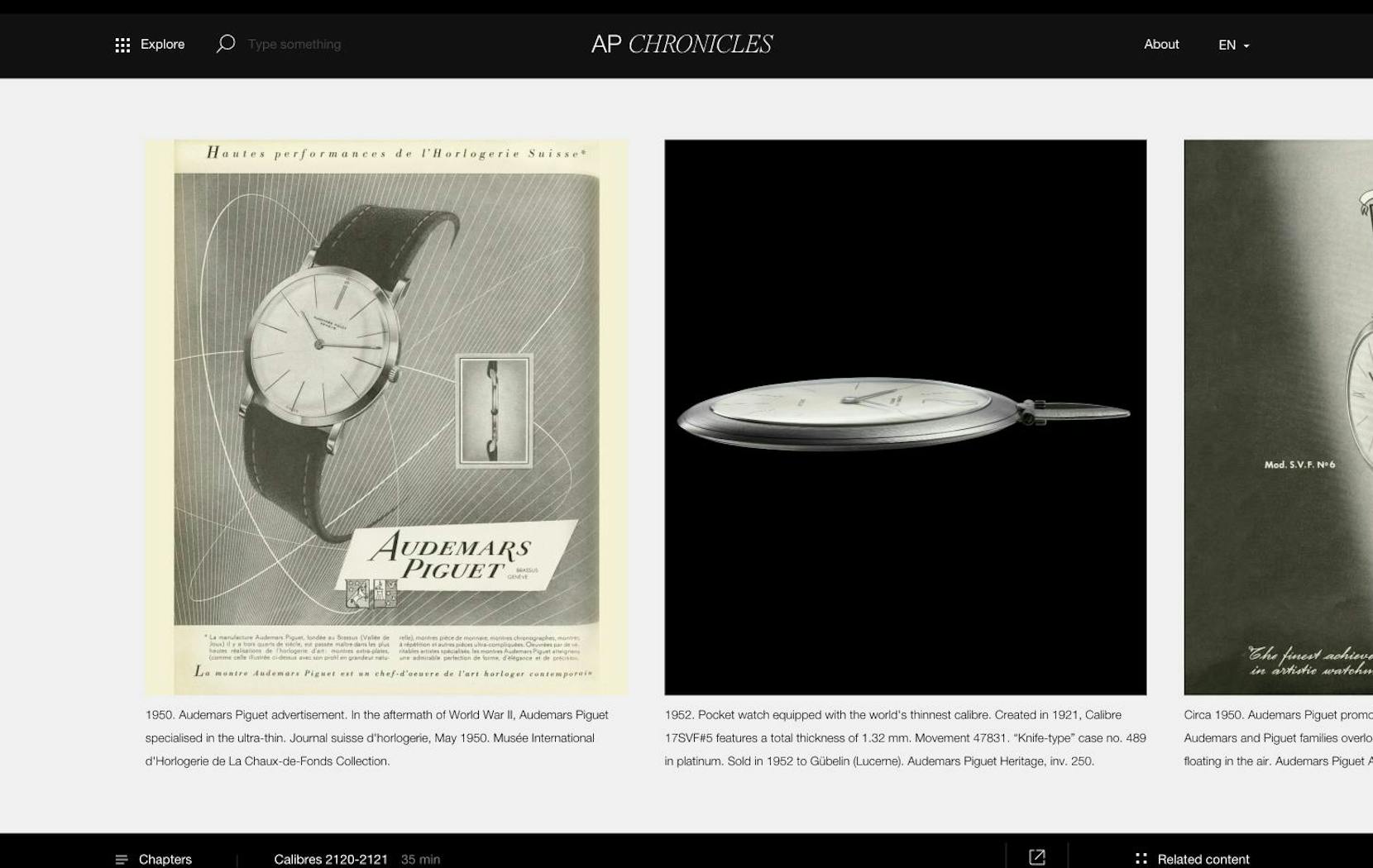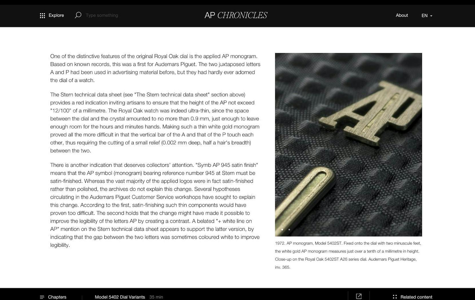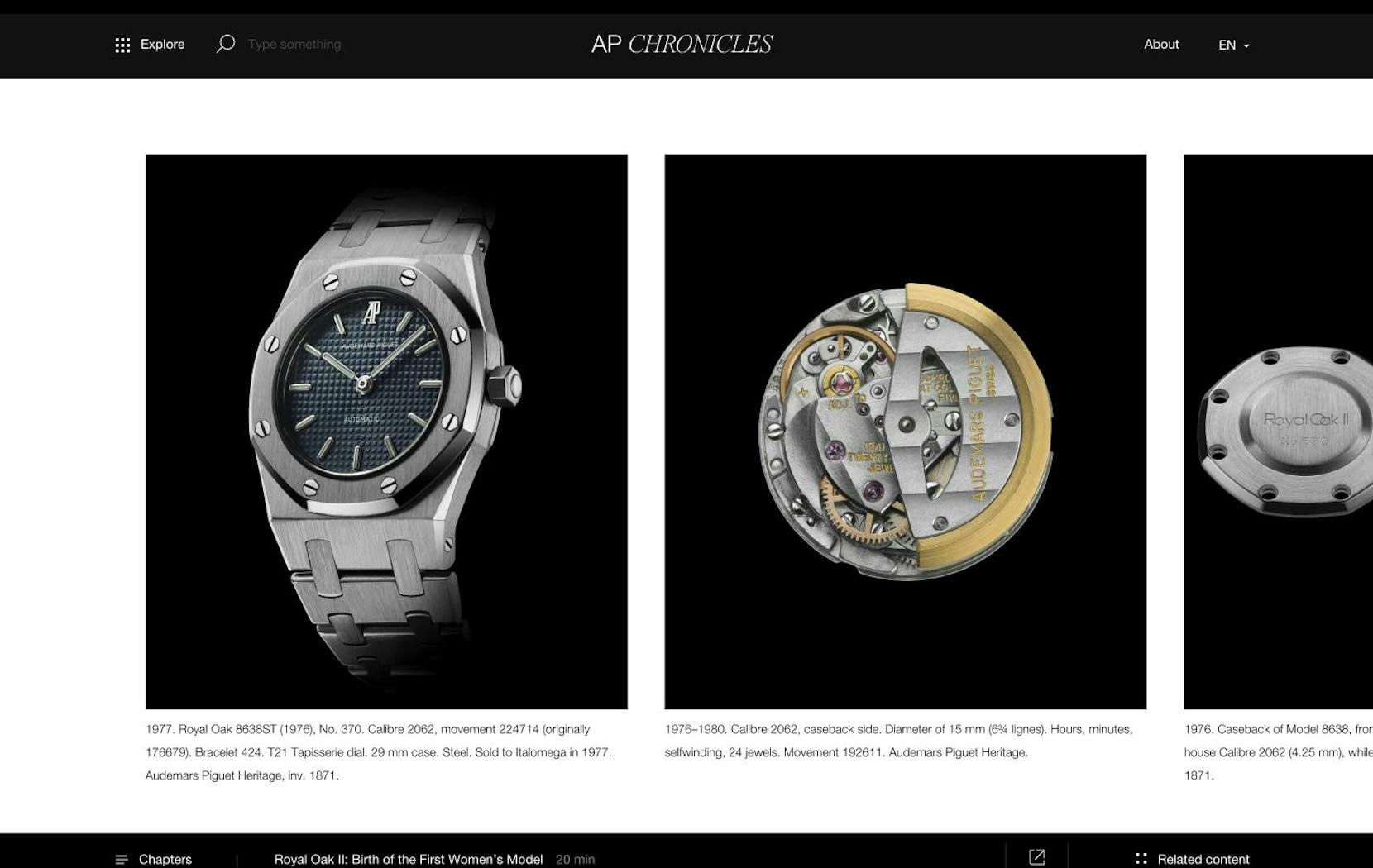 Dedicated to collectors and curious minds, the AP Chronicles platform is a series of articles resulting from years of research carried out by the Audemars Piguet Heritage team with an ambition to become the reference source on the history of the Royal Oak collection from 1972 to the present day. An opportunity to mark its 50th anniversary in a unique and exclusive way.