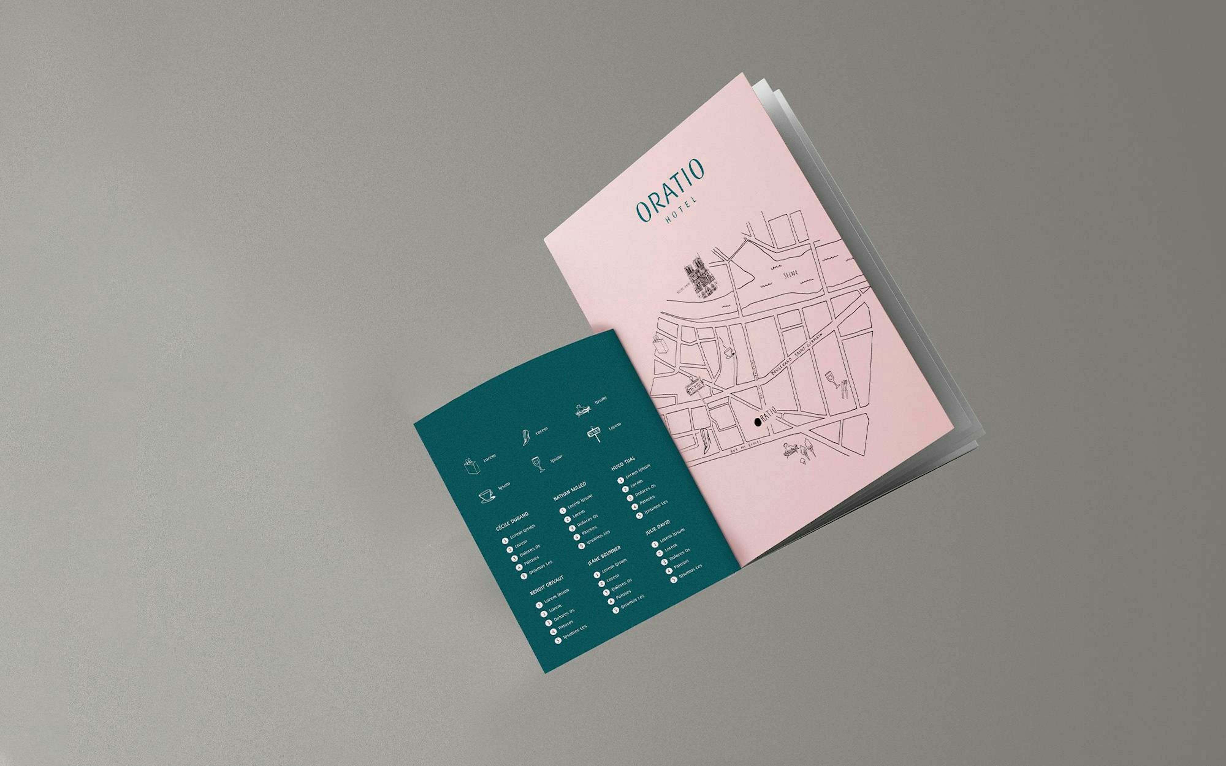 Après être parti à la découverte du quartier latin et à la rencontre de ses habitants, Bonjour Paris a réécrit l’histoire d’un arrondissement au cœur d’un hôtel : l’Hôtel Oratio. Réunis au sein d’un brand-book réalisé par nos soins, le logo, l’identité et la charte graphique racontent la réflexion stratégique que nous avons adopté : un hôtel de quartier, proche de ses commerçants et adepte des bonnes adresses. Afin de faire d’Oratio, le coeur du Quartier Latin, en mettant en scène ses orateurs/commerçants.